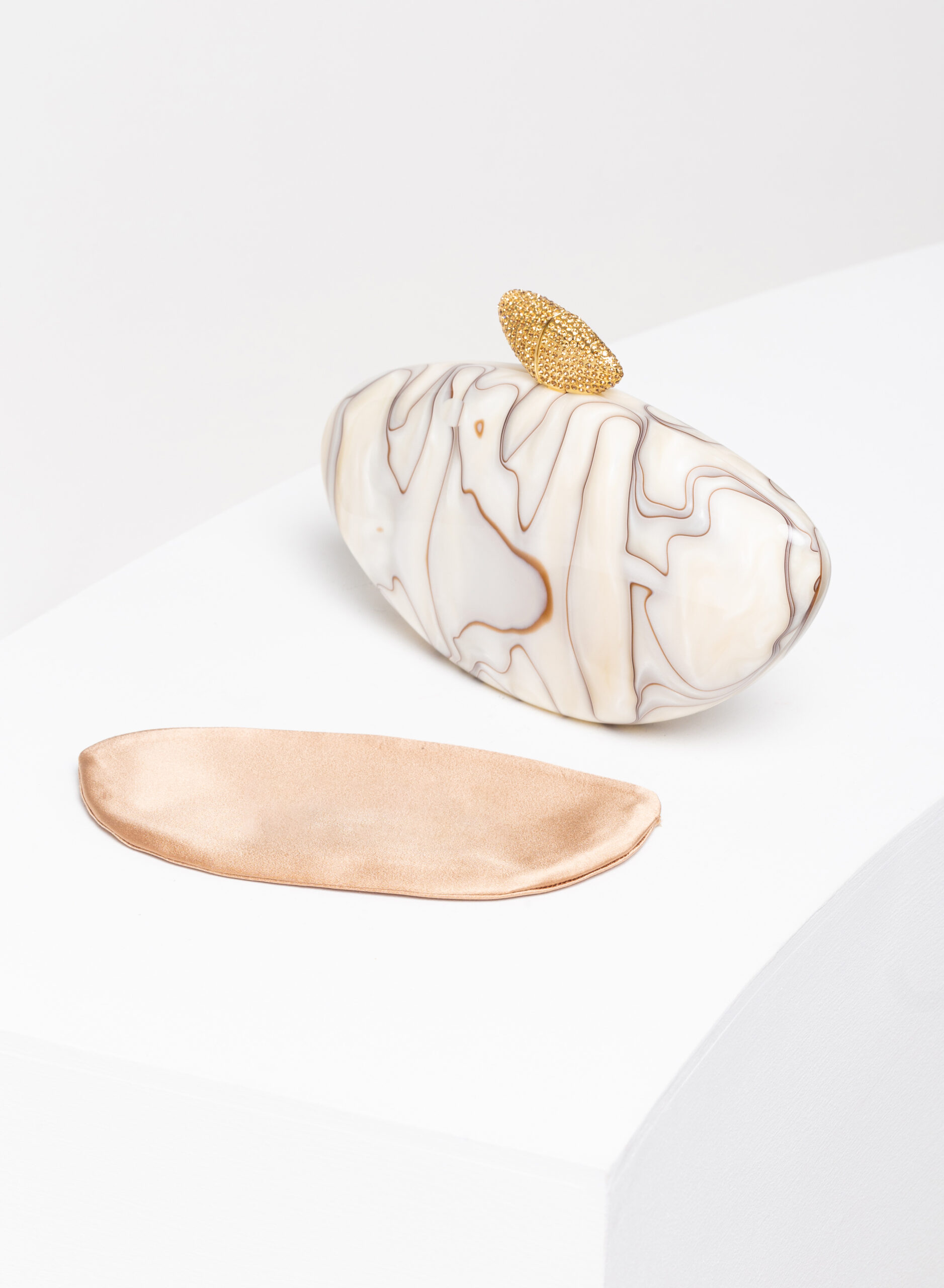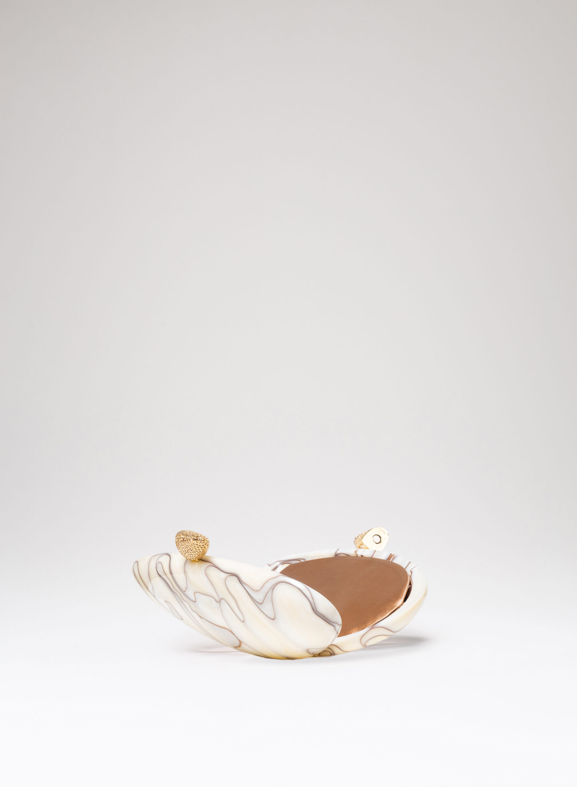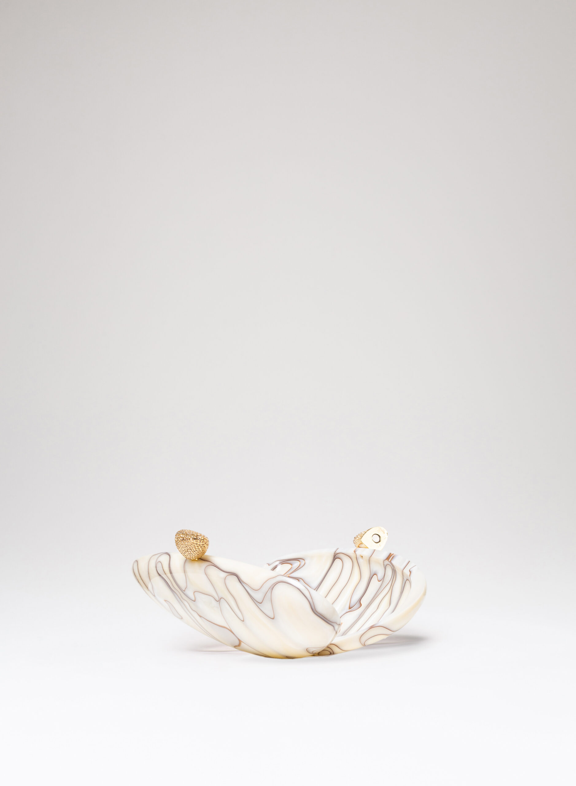 Metacrilato stampato 3D, dipinto e inciso a mano.