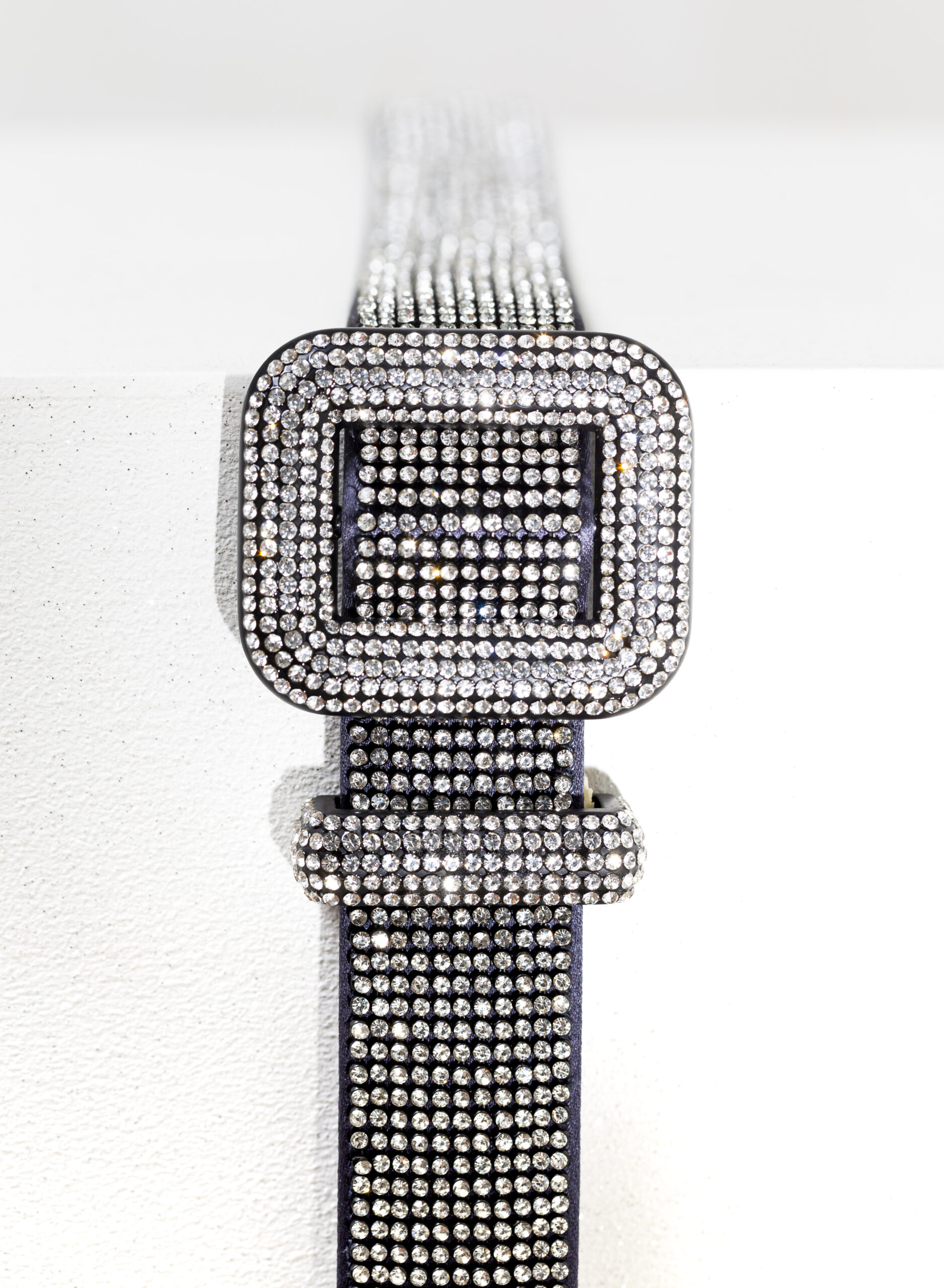 External: 100% Aluminium mesh studded with crystal rhinestones